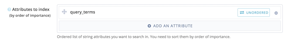 Add the 'query_terms' attribute to the attributesToIndex list.